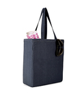 9 oz. cotton canvas; 22" handles; Double-reinforced open top; Bound inner seams; CPSIA compliant; 9"w x 10"h approx. front and back imprint areas; 5 ½" diameter max. front and back embroidery areas; Product Size: 11"l x 15"h x 5"w;